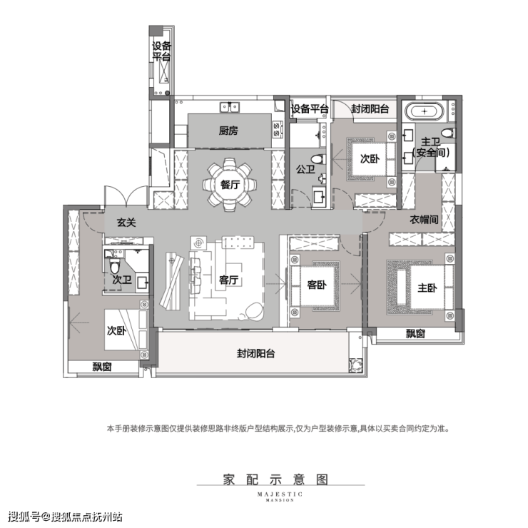 约6.8米面宽奢阔横厅衔接景观阳台,构筑通透朗阔的社交主场,尽显圈层宴请与家族欢聚的从容气度。且餐客厅相对独立互不干扰,有效保障家庭成员各自的活动需求,让空间更具实用性与舒适度。