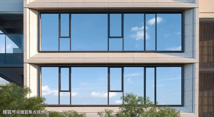 其次是建筑采用经典的三段式立面,集合仿石铝板、三玻两腔LOW-E玻璃和香槟色铝板线条,形成方正有序的框感,既有超奢美学,也把每一户的居住领地感拉到极致。