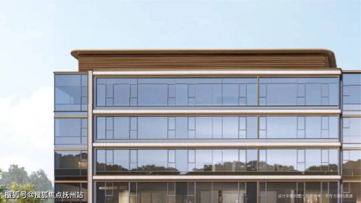 【外立面】:大面积玻璃幕墙+局部铝板线条