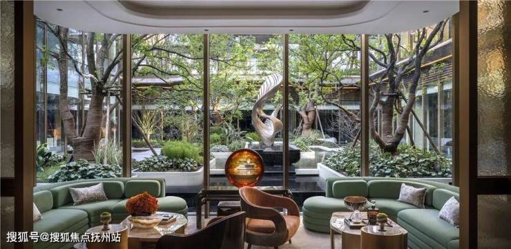 这些空间全部在负一层,以围合式布局,环绕下沉式中庭景观而建,并采用大面积玻璃景墙。