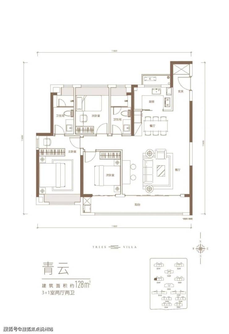 雲庐建面约103-128㎡阔景高层,超面宽向阳设计南北通透,高得房率拓展更多生活空间。