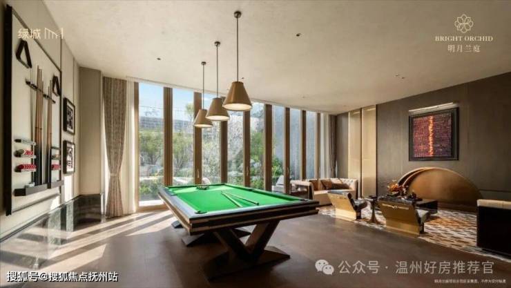 最里面做了多功能娱乐室,放了张台球桌。周末约上三五好友,打打台球,抽抽雪茄。同样落地玻璃门能够完全打开,还贴心设置了桌椅,可以通风换气,感受庭院的静谧。