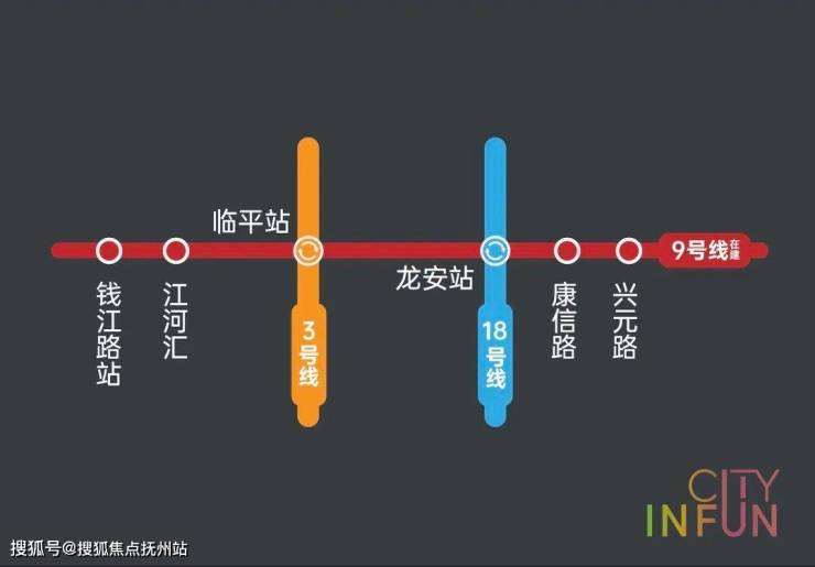 项目横跨地铁9号线兴元路站(在建)、康信路站(在建)两大站点,以轨道打破壁垒,一条地铁直达钱江新城、城东新城、滨江、西湖等高能区域,更高效的日常通勤外,还能享受到一脉市心的生活配套。
