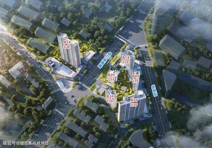 项目一共有A、B两个地块。其中A地块仅有A1#一栋楼,33层,2个单元,位于卓刀泉南路西侧;B地块有5栋楼,其中B1#、B3#、B4#17层,1个单元,B2#11层,1个单元,B5#33层,1个单元,位于卓刀泉南路和虎泉街交汇处。