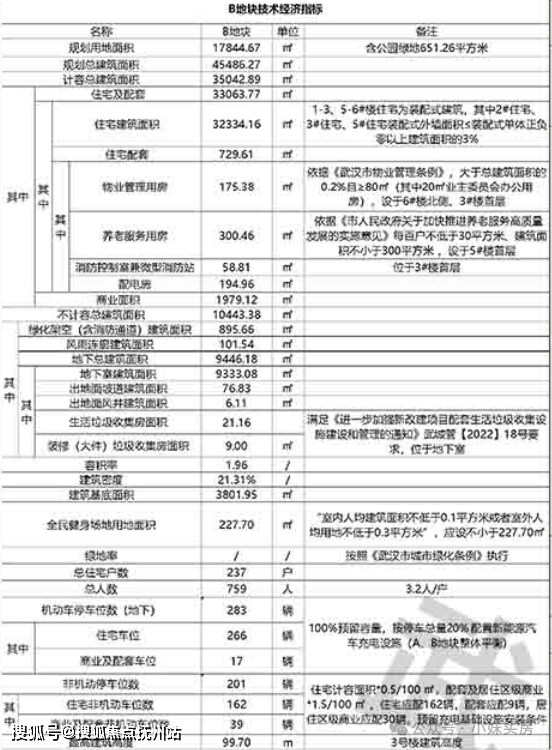 B地块用地面积约1.8万方,总建面约4.5万方,住宅建面约3.2万方,容积率约1.96,总户数237户,住宅机动车停车位266个。