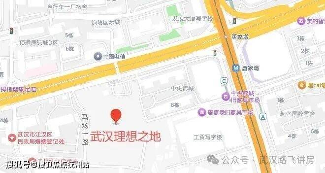 武汉理想之地地处江汉区二环内核心,具体位置在唐家墩路与马场路交叉口。
