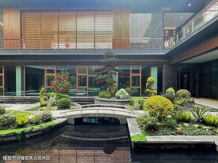 庭院设计深度融合南通“枕水而居”的在地文化,连廊、石桥、水榭等元素错落其间,山石乔木层次丰富,营造出“山石藏泉”的自然野趣,行走其间,仿佛置身江南园林。