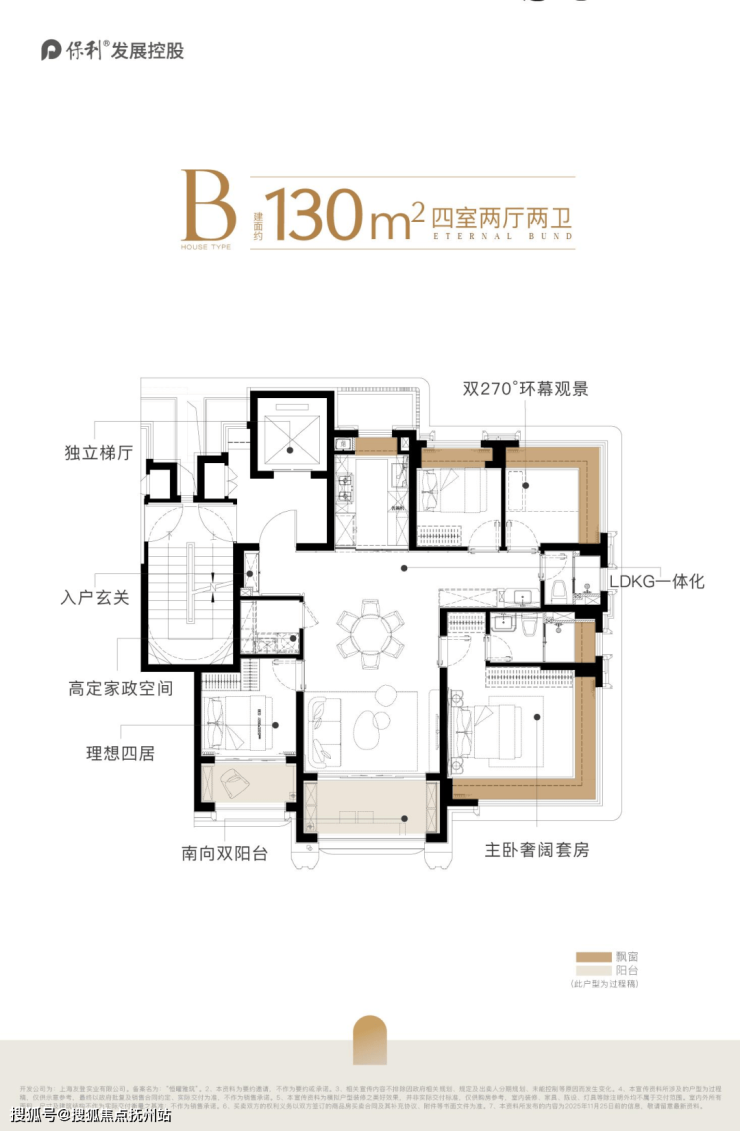 保利外滩曜建面约130㎡的实际使用率做到了约94%,双阳台+双约270°视野+一梯一户独立电梯厅+多飘窗。