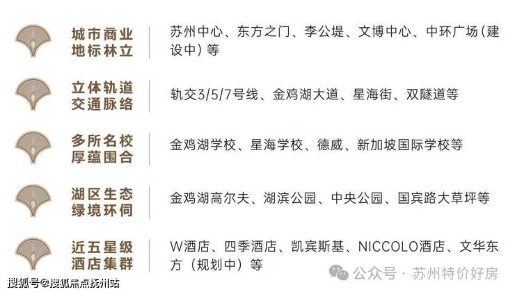坐揽金鸡湖与独墅湖城市地标、商业旗舰、城市公园、五星级酒店、文化剧院等繁华盛景,苏州中心、东方之门、中环广场等地标配套环湖而立,奢享开放包容的国际滨水生活圈。