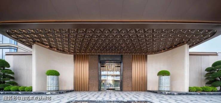大门以景墙与水景延展视觉张力,诠释酒店式高定落客礼仪,兼具江南贵雅与显赫气度。