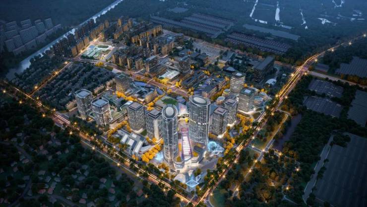 一座是金湾:一座4条轨交5站点(9、12、14和规划崇明线)、总建筑面积约343万平方的TOD站城;