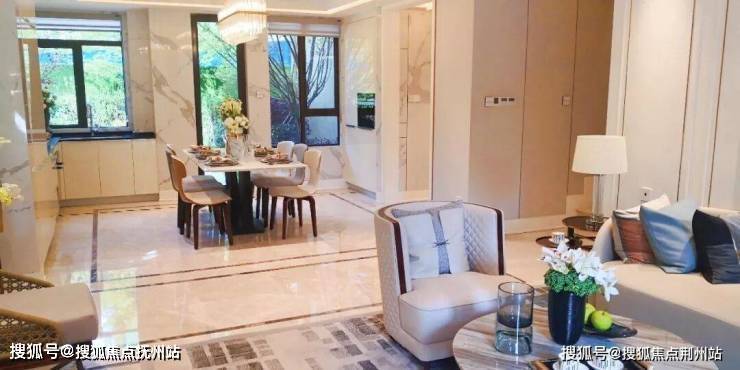 入户4.8米南北同宽的客厅餐厅,三面窗户的大采光的设计,更显敞亮,同时南北双向推门就能去花园。