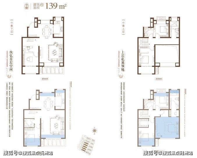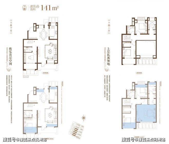 下面就重点看一下下叠的户型,建面约141平户型,实得面积达337平。