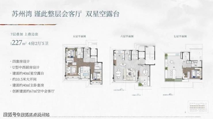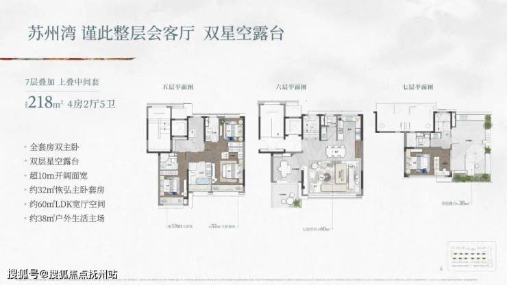 空中上叠——坐拥整层会客厅与双星空露台,约 67㎡空中会客厅承载家庭欢聚,约40㎡顶层露台可揽星月、观湖景,让生活在尺度与诗意间实现平衡。对于想要改善生活品质的家庭而言,上叠无疑是苏州湾高端改善的理想之选。
