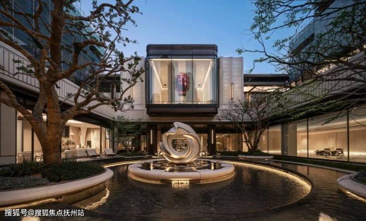 在开启门扉的瞬间,门头的镜面水系,搭配洁白温润如玉的雕塑,托起远端闪耀的红宝石,锦绣繁华、福泽呵护,皆是温州人注重的美好意蕴。