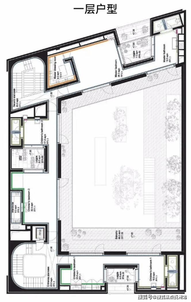 项目由12栋中西合璧的四合院组成,其中12号是楼王,13号是物业管理用房。11栋可售房源的面积段约为1000㎡-1500㎡,其中4栋为精装修交付,7栋为毛坯交付。