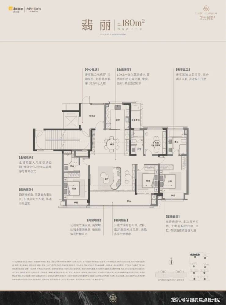 建筑面积约180平方米翡丽户型,基于都市人士对高品质生活的需求,更具包容性和自由度。