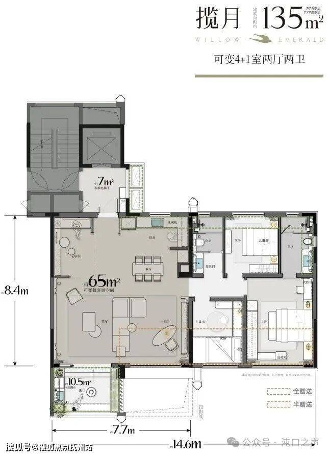一个好的可变户型,不仅预留更多个性化和自主性设计空间,还可以通过空间的分割满足不同阶段的需要,不需要置换房子就可以一房多用。绿城·柳岸鸣翠135方可变4+1室两厅两卫户型,经过无数次细节研磨,以超强的可塑性空间,完成一次家庭生活场景的革命,只为满足居住者对空间多元化的需求。