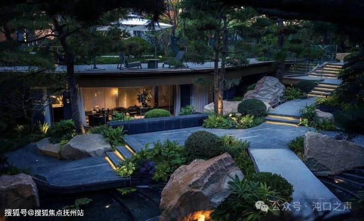 园内造价600万的森系下沉庭院超吸睛,17阶水景与项目门牌呼应。丛生乌桕、造型红梅搭配置石,叠水瀑布自芝兰玉树飞泻,气势不凡。沿香径漫步,红梅、迷迭香萦绕,过景行桥,至会客观景台,流水潺潺,尽享林泉之趣。