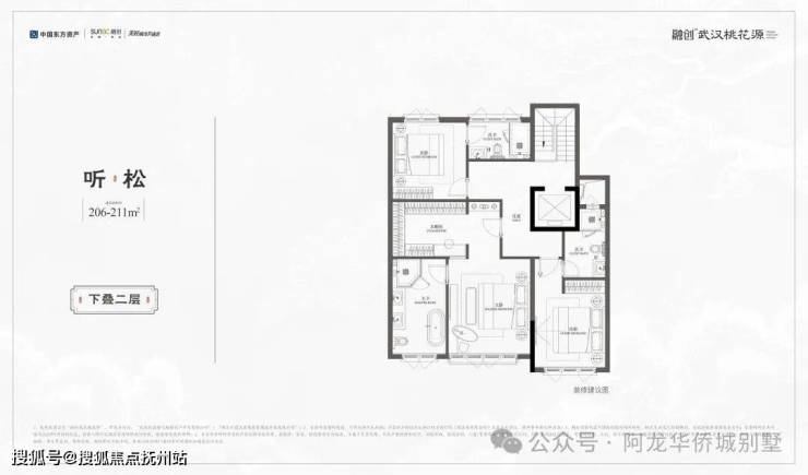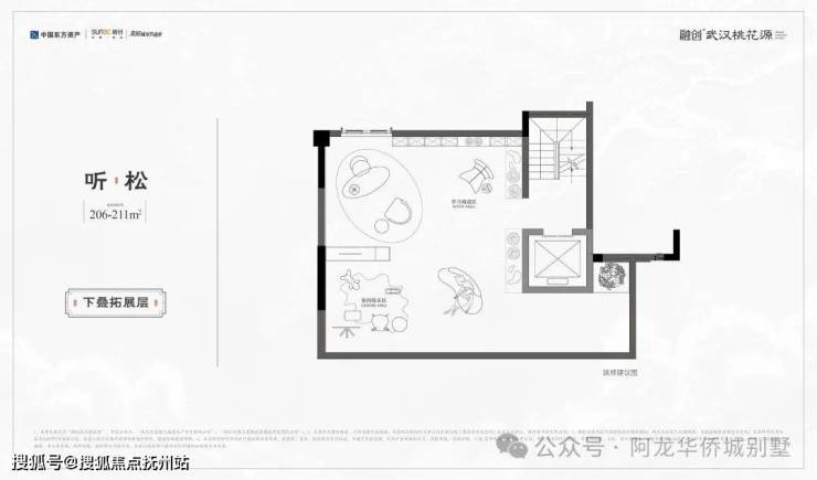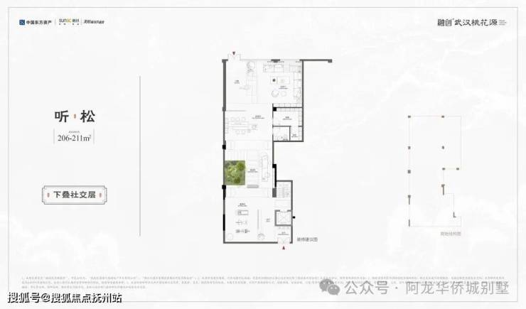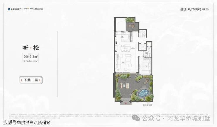 ◇听松|下叠|建面约206-211㎡· 一线临湖叠墅,窗前即是天心湖景· 奢阔私家庭院,面积约84–131㎡· 独特拓展层空间,兼顾孩子成长需求· 创新社交层场域,多元功能全家族满足