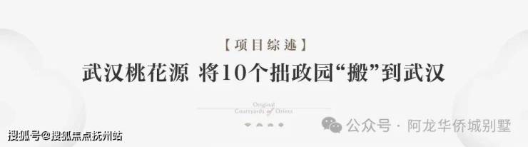 ◇传承桃花源 山水且留下武汉桃花源相承桃花源系高阶基因与至高造诣,秉承中国园林“虽由人作,宛若天开”的极致境界,携手断代背景下的非遗国匠香山帮,在延续中国古典建筑与苏式园林精粹基础上,交融磅礴楚风楚韵,为世界再现一座山水桃源胜境。