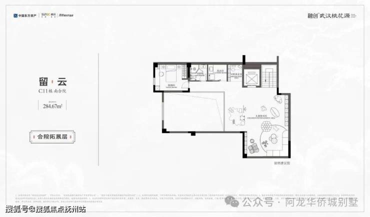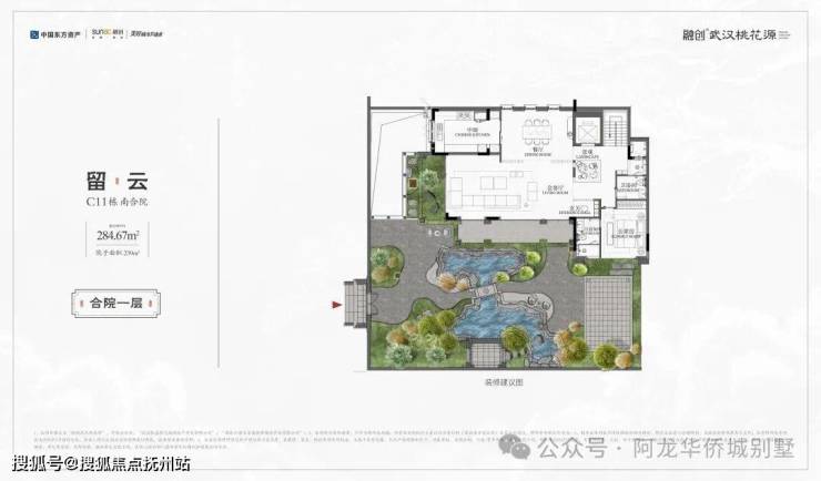 ◆主推产品◇留云|C11南合院|建面约284.67㎡· 举步即赏天心湖景,闲庭信步水杉林· 一墙之隔清漪叠瀑,置身一园江南山水· 独门独院,私家庭院面积约239㎡· 一层一代一世界,家族生活从容有度