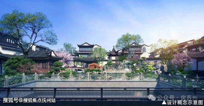 项目借鉴苏州街巷式之形,以“一环五庭三坊七巷”为布局理念,通过宅、巷、园、庭、门的五重归家院境,复刻明代山水画大师仇英《桃源图卷》之境。形成园中有园、景中有景,寄托居者情怀、传承中式风雅,契合富豪对私享场景的讲究。
