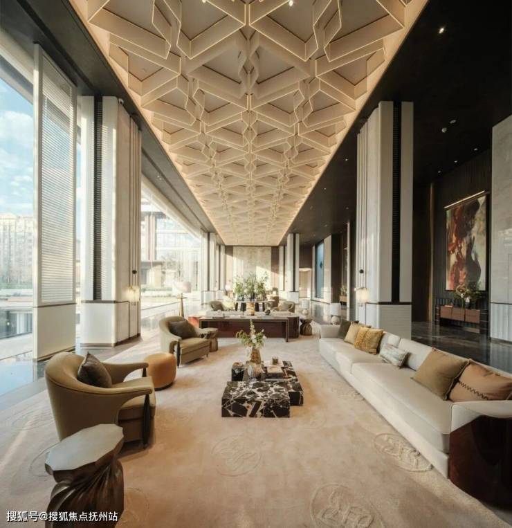 ◆项目打造东、南、西三个社区入口界面,东侧利用沿街景墙连同80m+的山水归家超级界面,入口大面积金属吊顶采取“万字曲水纹”图案,体验城市收藏级归家入口。西侧约60米社区大门为业主归家车行主入口,一线对望湖滨,以伴水归家水境营造奢华游园之旅。南侧大门为别墅洋房区人行入口,取意苏州园林借景手法,营造中轴主景观节点,出入可直接眺望南湖。