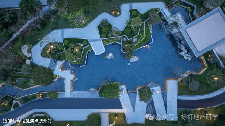 整个低密墅区整体抬升约1.5米,即使临湖仅约50米,仍以从容之姿俯瞰南湖波光,景观水系以“静影沉璧”为灵感,打造镜面水景与叠水潺潺相结合的灵动格局。