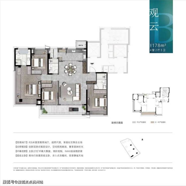 观云B 建筑面积约178㎡四房两厅三卫