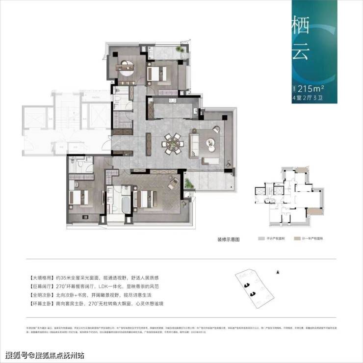 栖云C 建筑面积约215㎡四房两厅三卫