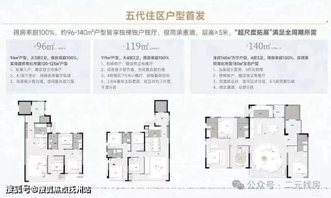 据了解,金地大成乐府的户型大致上还是延续金地大成乐府的设计(一些效果图都一模一样),得房率超100%,独立电梯厅入户,层高3米。