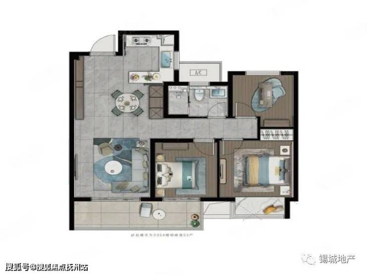 C地块(左下),总高22层小高层,两梯四户,精装修,96与112平三房;