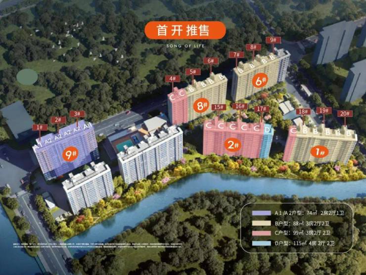 保利虹桥和颂预约热线:400-116-2990☎南向临河,既赋予临河楼栋优越的河景视野,也给业主快节奏下,享受慢生活创造了空间。