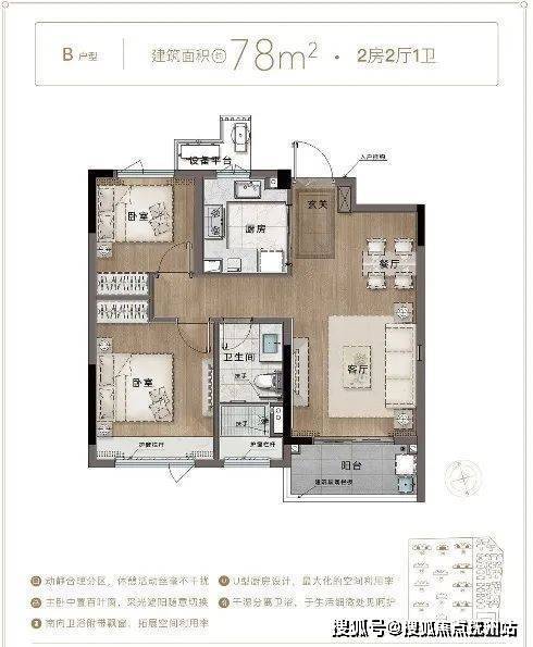 建面78㎡户型2房1卫