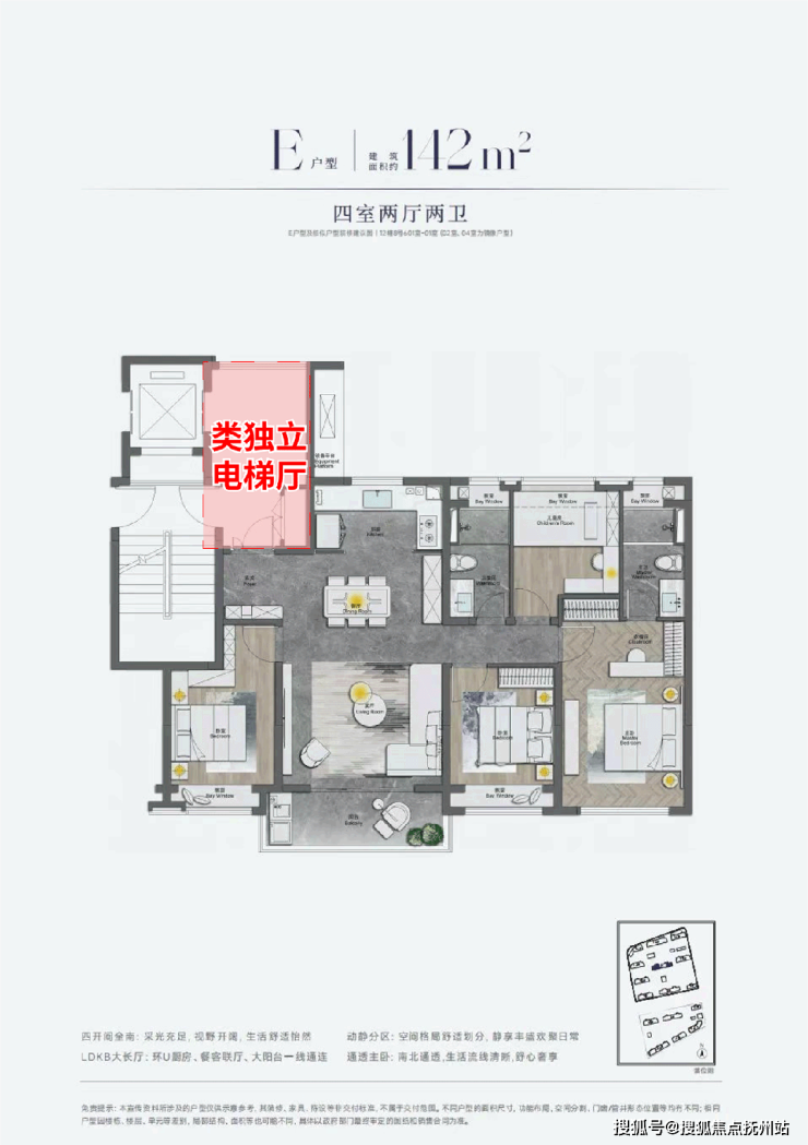建筑面积约105平方米的景观楼王户型,几乎可称得上是完美无瑕的优选户型。该户型具备三面朝南、南北通透以及宽敞餐厅的设计基础,同时实现了主卧室与北侧次卧室的L型大飘窗配置,提供了270度的采光和开阔视野。通常,L型飘窗设计仅见于豪宅的大平层主卧之中,而今在西派海上百平方米的户型中得以实现,并且一户之内便设有两间卧室。对于主卧而言,躺在床上即可享受窗外景观;对于北向次卧,L型飘窗则有助于扩展空间感。此类户型在市场上极为罕见,预示着其在未来二手房市场中可能具备独立的定价权。