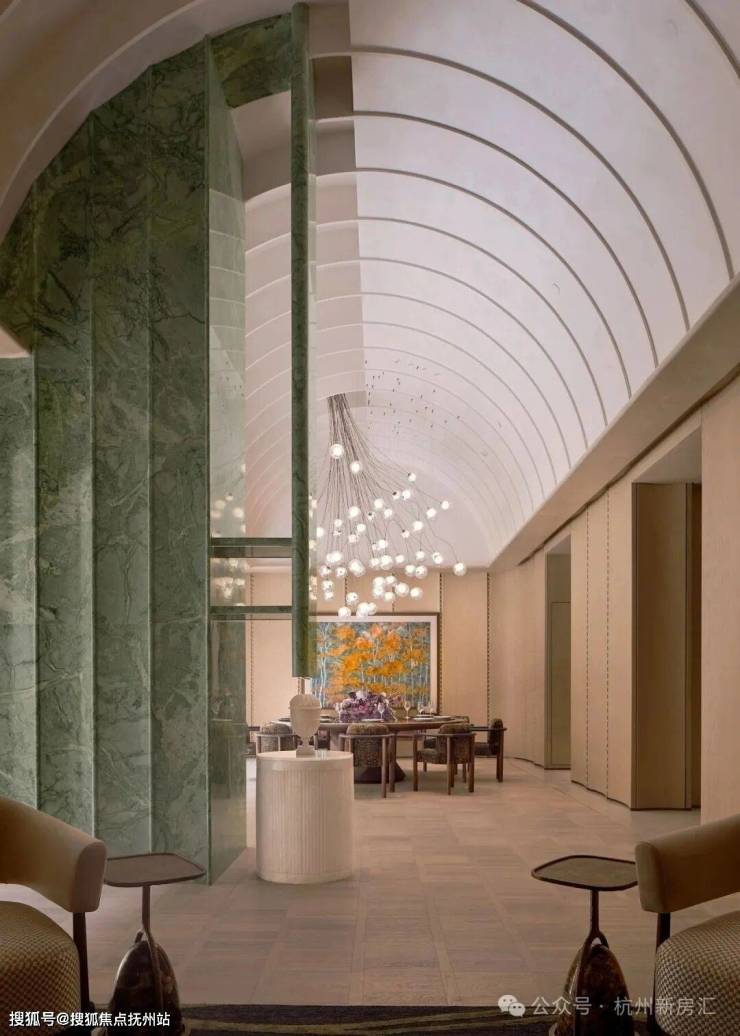 整体抬高约3米,钱二新规1号作品:作为钱二新规1号作品,杭序府整体抬高约3米,以开创者的姿态,将社区的公区架构从横向铺排转为立体打造,依次向上叠加地上架空车库、楼幢架空层等。在垂直维度,正式开启一场关于仪式与秩序的革命。