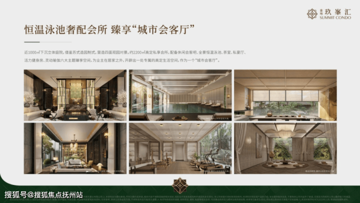 约2200㎡高定私享会所,配备休闲会客吧、全景恒温泳池、茶室、私宴厅、健身房、瑜伽室六大主题空间