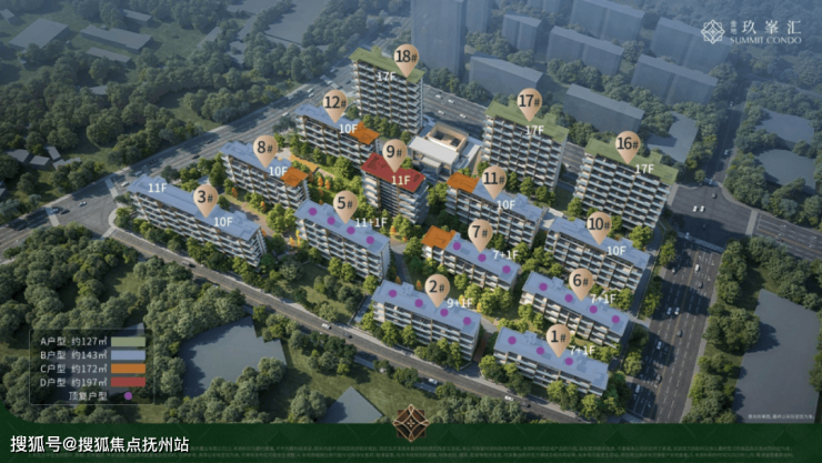 项目产品:9栋8-10F住宅、2栋11+1F住宅、3栋17F住宅