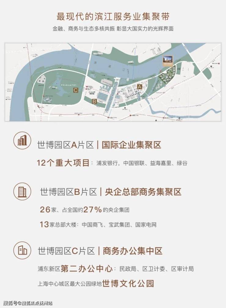 项目坐落在世博滨江板块,重点打造“一区三带”,目前区位版图已初步成形。