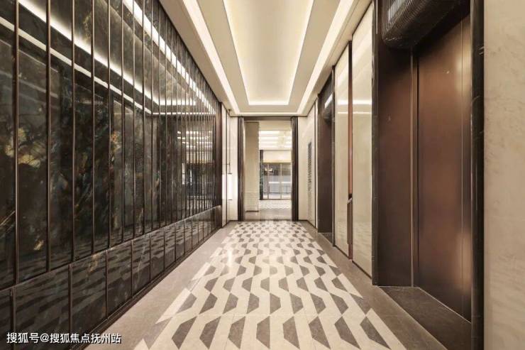 电梯前厅的地面,沿袭保加利亚灰大理石和雅典白玉波打线,墙面覆以清雅玉大理石,就连电梯门套,也被星耀灰大理石包裹,通体丝滑泛光。