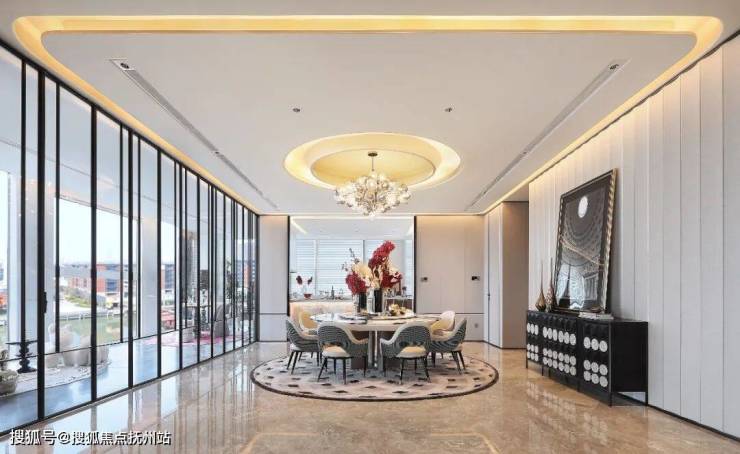 会客的动区面积更大,约200方,南向开间约40米,连通开间约25米的“阳台”,全落地玻璃设计,配上约3.8米的层高,透彻的如同一个玻璃盒子。家里的孩子若感兴趣,完全可以在动区靠墙一侧,开辟出一条赛道,让迷你版的兰博基尼,在室内就可纵情驰骋。