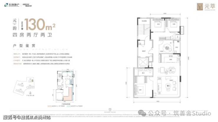 建筑面积约127平方米,四室三卫,配备独立电梯厅,南向拥有宽敞阳台及大型花池,其余卧室与厨房均设飘窗,北向多功能空间,预留空调位及设备平台,可优化利用,赠送面积丰富。