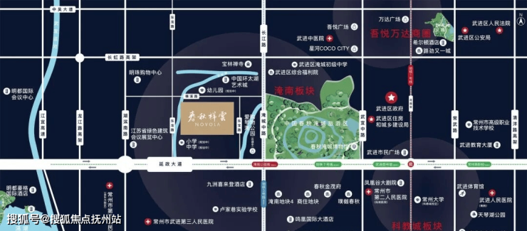 【交通】:三横两纵双铁立体交通网。“三横”——延政大道、长虹高架、沿江高速;“两纵”——淹城中路、龙江高架;“双铁”——3号线(规划)、7号线(规划)