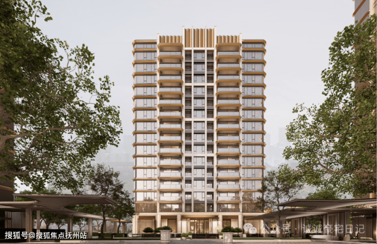 外立面设计,颜值拉满!建筑以暖色为基调,香槟金为点缀,全幅玻璃幕墙搭配澄澈镜幕弧形立面,品质感与昭示性极强!