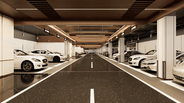 约2.5-2.6米超标准车位宽度(微型车位除外,约2.6米宽车位占比约10%),超越常规标准,为中大型车辆提供宽绰空间;行车道约2.6米净高,营造开阔无压迫感的体验。