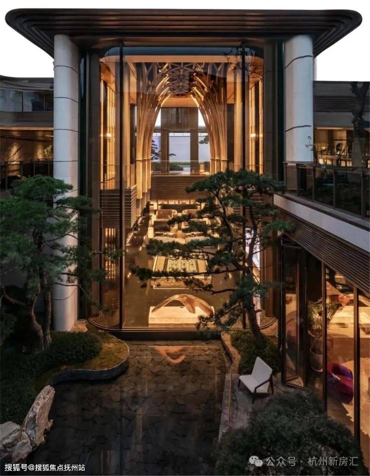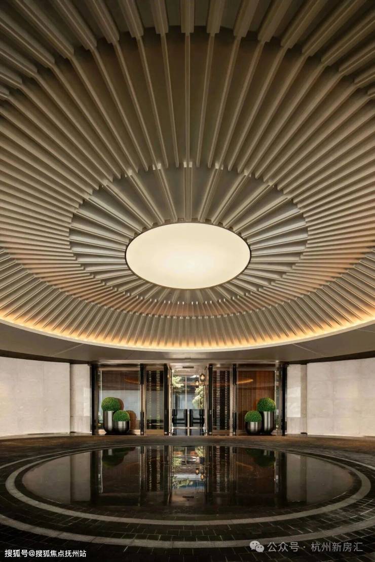 约43米恢弘门庭两侧黑松耸立,挑高约12米的归家大堂洒下尊崇感,钱塘江潮涌的曲线凝固在露台边缘,星河触手可及。