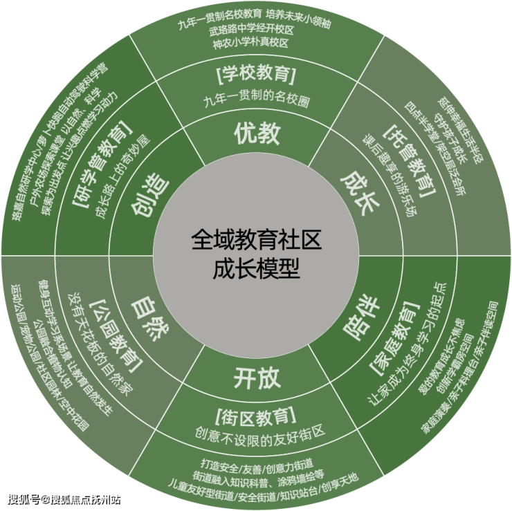 招商·武汉城建未来中心将神龙小学朴真校区与武珞路中学经开分校两大名校置于家门口,并通过全域教育社区突破传统社区教育配套碎片化的局限,创新提出学校教育、研学教育、托管教育、公园教育、街区教育、家庭教育“六维成长模型”,形成家校社协同育人的完整教育体系,打造“武汉首个全域教育示范社区”。