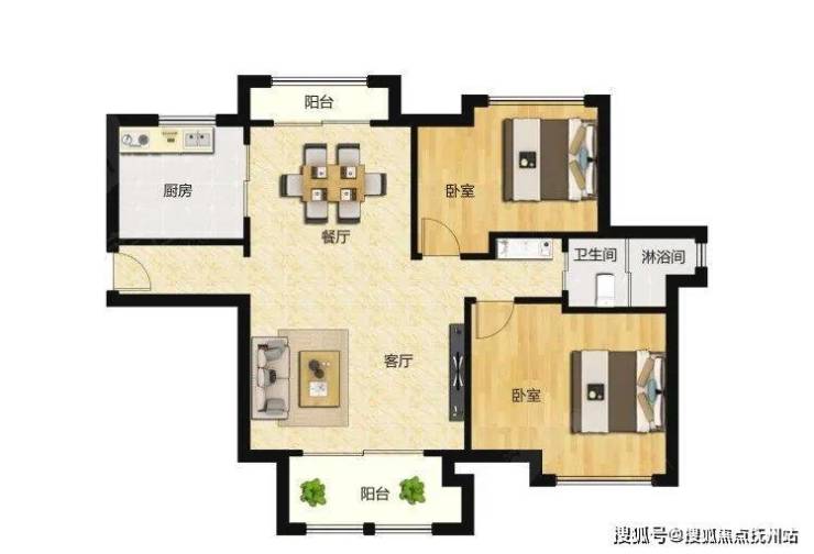 一层为宽阔客厅与餐厅,南北通透,配备中西双厨;
