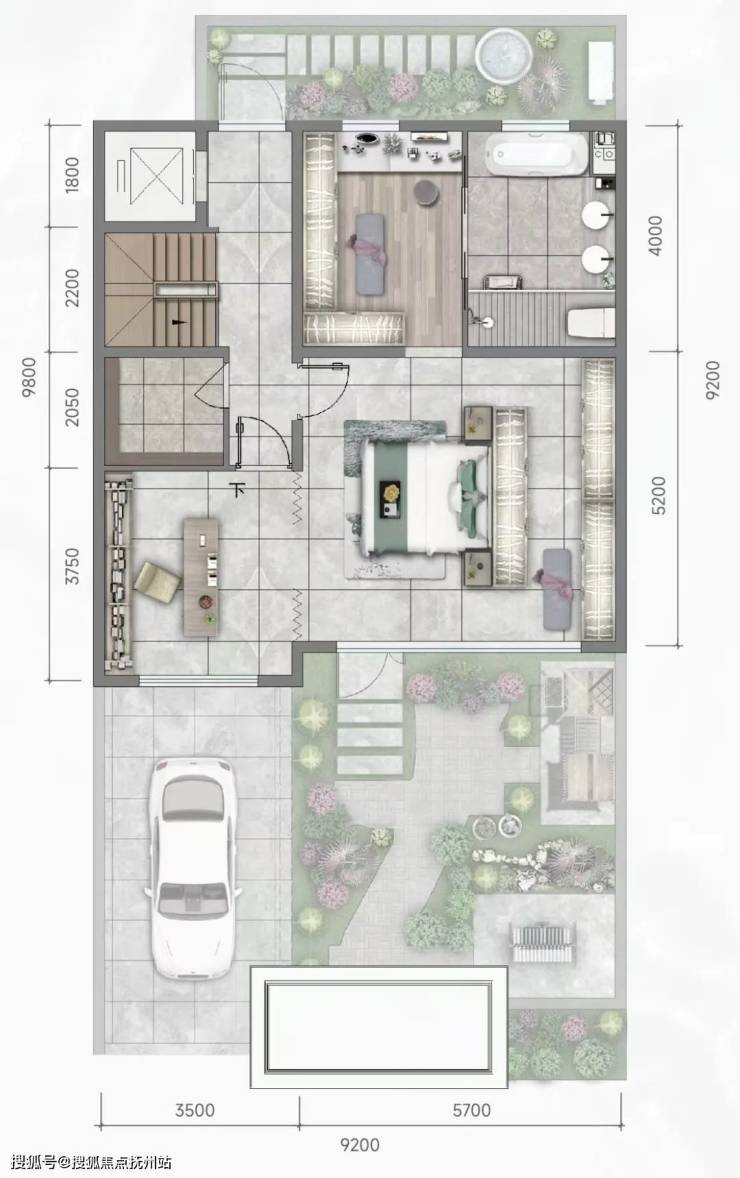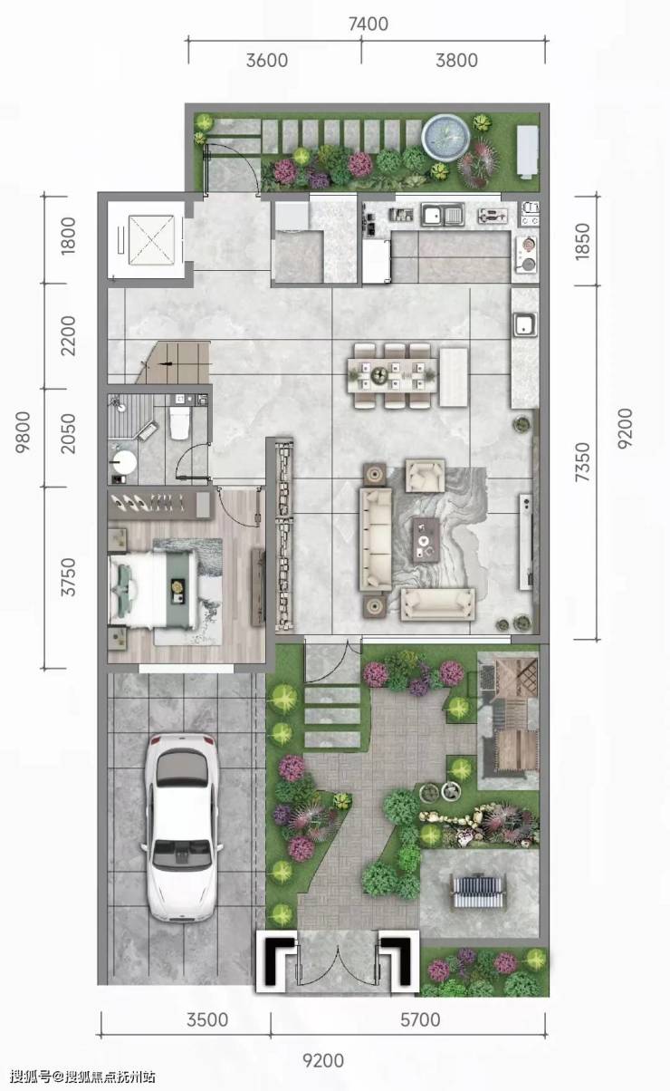 厅院一体入户,礼宾首席门面大门中轴入户,连接超5米进深南向花园,直达通透宽尺客厅,三重礼宾归家动线。